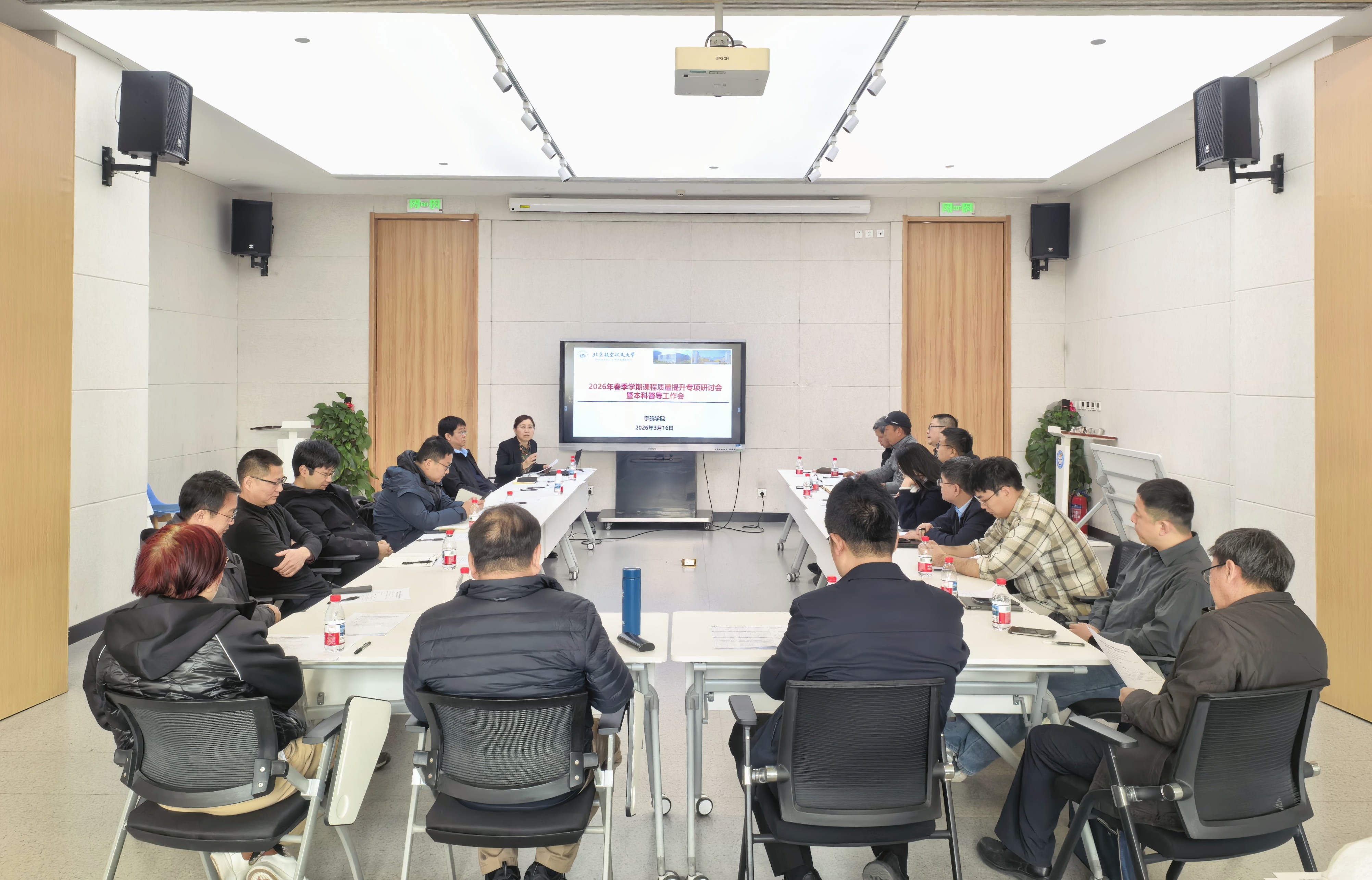 2026年3月16日,十大正规买足球网站在沙河校区主楼D409开展2026年春季学期集中听课,并组织召开2026年春季学期课程质量提升专项研讨会暨基层教学组织建设工作推进会。公司领导班子成员、督导组专家、基层教学组织主任、副主任及辅导员代表等26人参会。会议由副经理谢凤英主持。
