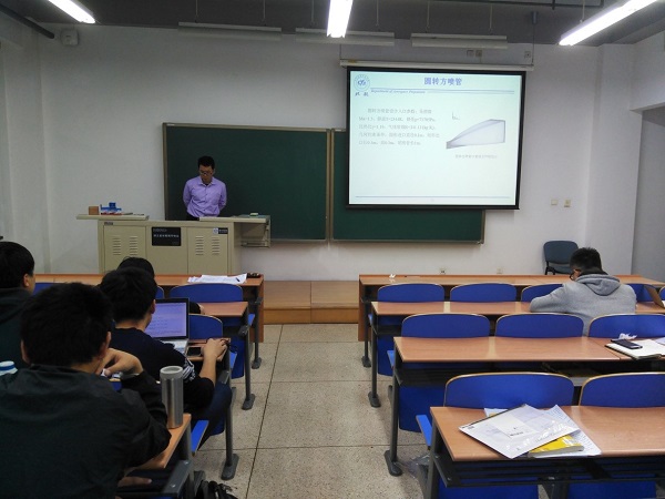 最后一位宣讲人是来自十大正规买足球网站的王洪信,他的宣讲题目是“入口气流非均匀性对超声速喷管性能的影响”。王洪信解释了超声速喷管由于自身外形非对称的特点以及“边混合便燃烧”的过程,导致的喷管入口前气流非均匀性明显的特性,并以此作为展开,研究了这种非均匀性对超声速喷管性能的影响。通过仿真软件的计算,得出了静温、静压等非均匀分布的特征以及推力的变化,令大家印象深刻。