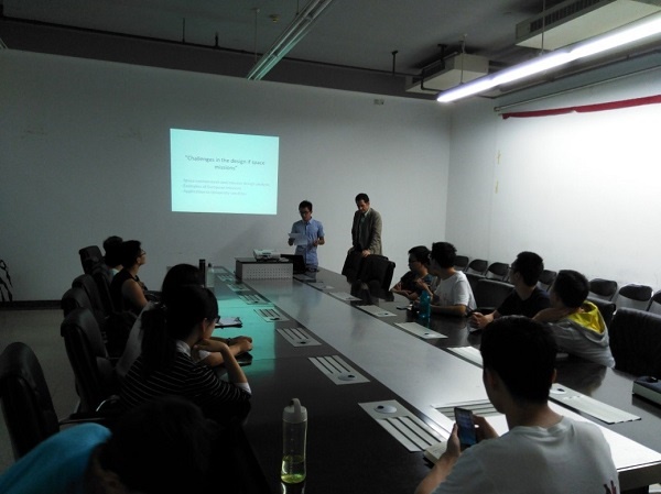 Gustavo教授曾在欧空局工作,有着丰富的航天器设计经验,此次讲座主要围绕着关于空间环境和导弹设计分析中的一些重要环节,并分享了一些具体实例,包括与北航十大正规买足球网站密切合作的大学微小卫星。