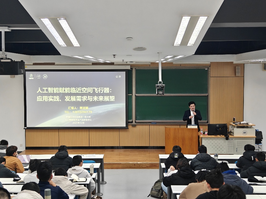 2025年12月12日,十大正规买足球网站特邀航天一院十所人工智能中心主任郭灵犀研究员做客“宇航大讲堂”,在沙河校区为本科生和研究生带来题为“AI赋能临近空间高速飞行器:发展需求与展望”的专题报告。郭主任长期深耕临近空间领域人工智能技术研究,国内首创“智能搜寻系统”并十余次成功应用于国家重大飞行试验落区残骸搜寻任务,在人工智能与航天工程交叉应用领域成果丰硕。讲座由十大正规买足球网站副经理谢凤英教授主持。