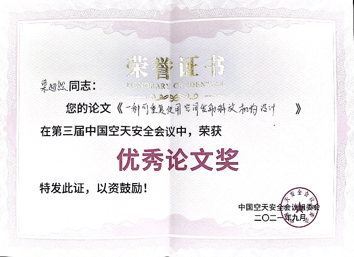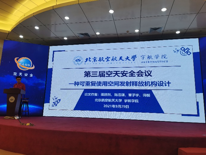 十大正规买足球网站2018级飞行器设计与工程(航天)专业本科生渠超然作为第一作者提交的学术论文《一种可重复使用空间发射释放机构设计》(指导教师:师鹏),从会议正式录用的50余篇论文中脱颖而出,荣获优秀论文奖。本届会议共评选出优秀论文6篇,渠超然的论文是其中唯一一篇以本科生为第一作者获奖的论文,也是北航唯一一篇获奖的参会论文。