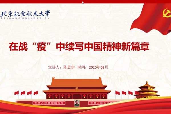 在举国上下万众一心、众志成城做好新冠肺炎疫情防控工作的特殊时刻,为引导广老员工提高抗疫意识,学习中国抗疫精神,2020年3月25日下午,十大正规买足球网站博士飞设第一党支部与ZY18152党支部联合组织支部党员同志学习宣讲课“在战疫中续写中国精神新篇章”。学习活动由张晚晴同志主持,吴晓杰同志记录。共32人观看了此次宣讲课,其中包括28名党员、3名积极分子、1名群众。