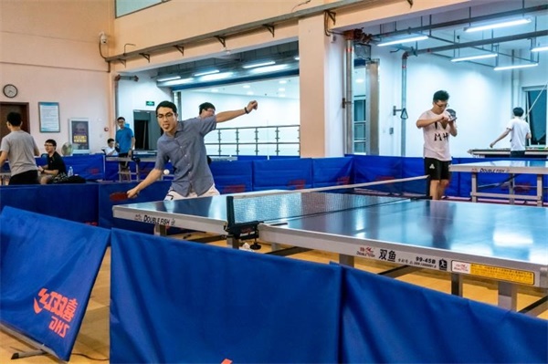在乒乓球比赛场地,各位同学积极尝试。其中,一些同学有很好的乒乓球技术基础,对决的氛围紧张而刺激。也有不少同学都是初学者,握拍、击球还显得有些生硬,经过几轮相互切磋、学习,大家的技术有了不同程度的提高。现场笑声不断,同学们非常很开心。最终,朱涛选手凭借其精湛高超的技术摘得桂冠。