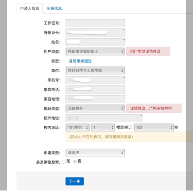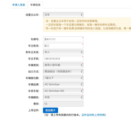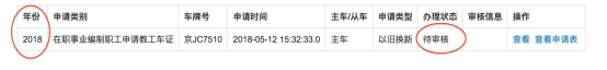 e.回到“车证申请”页面,出现如下界面