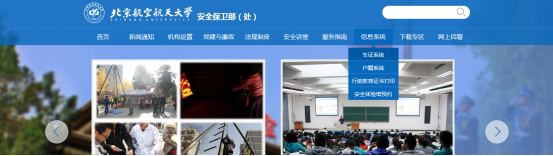 建议使用搜狗、360(极速模式)或谷歌浏览器,输入网址http://bwc.buaa.edu.cn,点击“信息系统”-->点击“车证系统”,如下图所示: